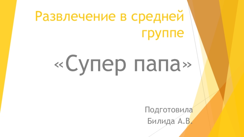 Презентация, доклад на тему Развлечение в средней группе Супер папа