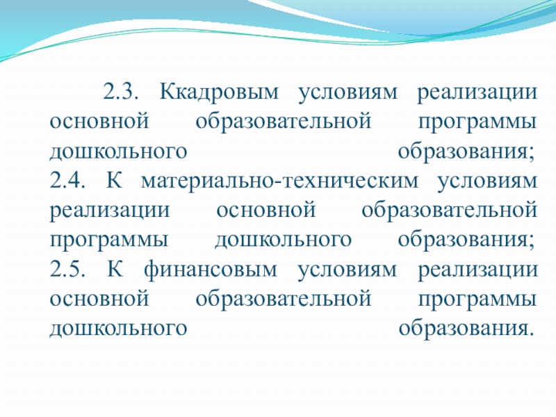 Слайд 13 2.3. Ккадровым условиям реализации основной образовательной программы дошкольного образования;