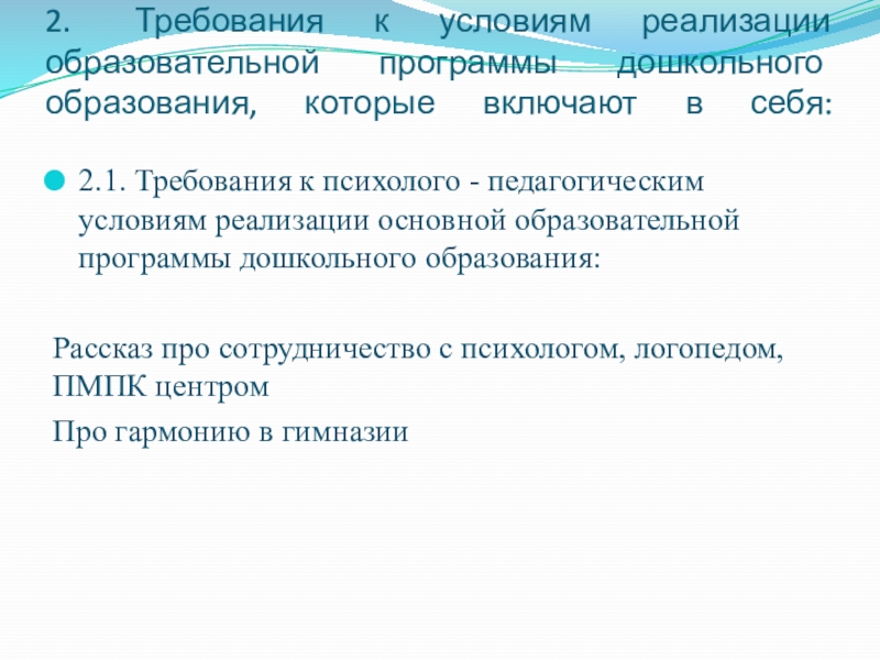 2.1. Требования к психолого - педагогическим условиям реализации основной образовательной программы дошкольного образования: