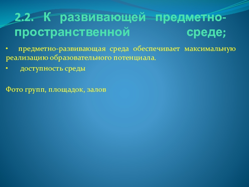 Слайд 122.2. К развивающей предметно-пространственной среде;
