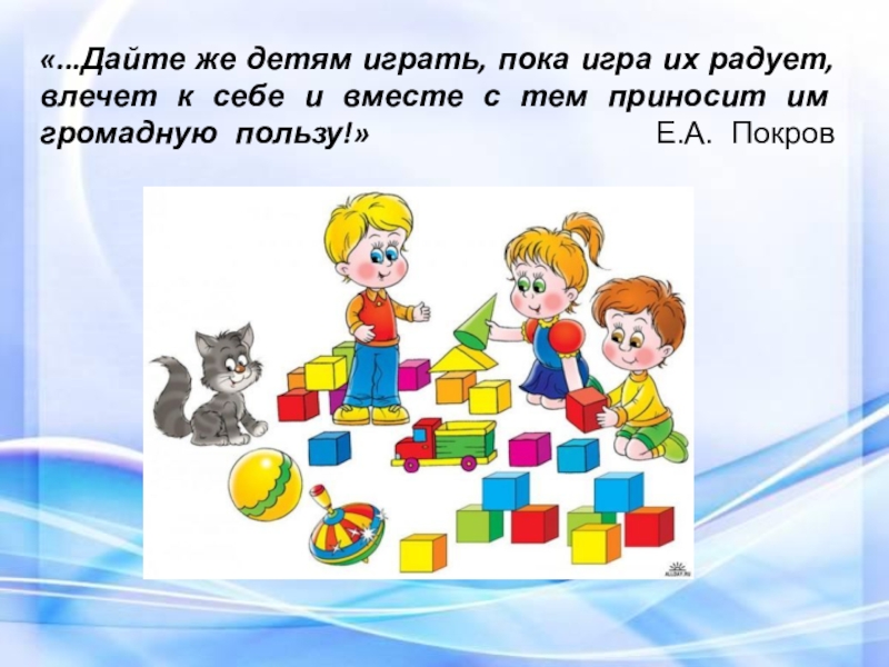 Слайд 13 «...Дайте же детям играть, пока игра их радует, влечет к себе