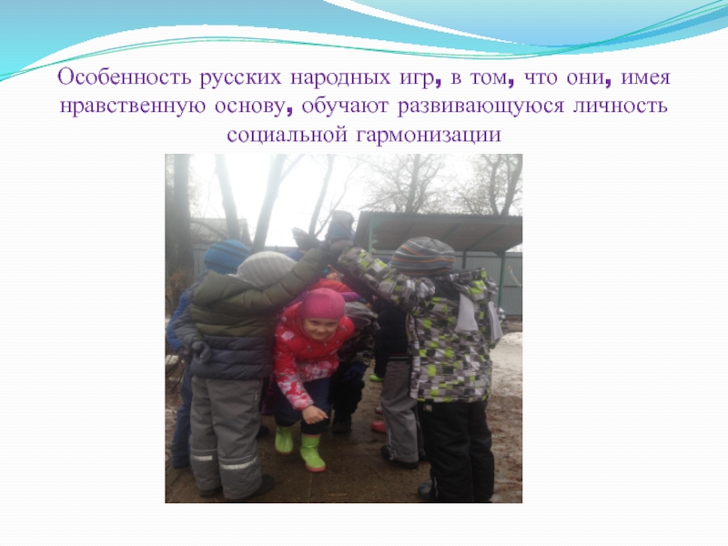 Слайд 17Особенность русских народных игр, в том, что они, имея нравственную основу,