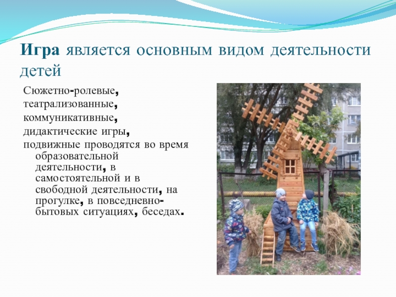 Слайд 9Игра является основным видом деятельности детей