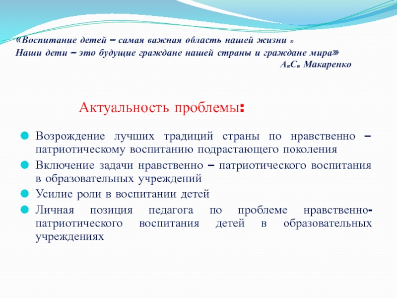 Личная позиция педагога по проблеме нравственно-патриотического воспитания детей в образовательных учреждениях