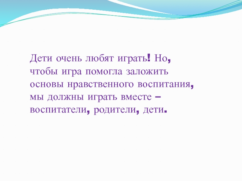 Слайд 26Дети очень любят играть! Но, чтобы игра помогла заложить основы нравственного