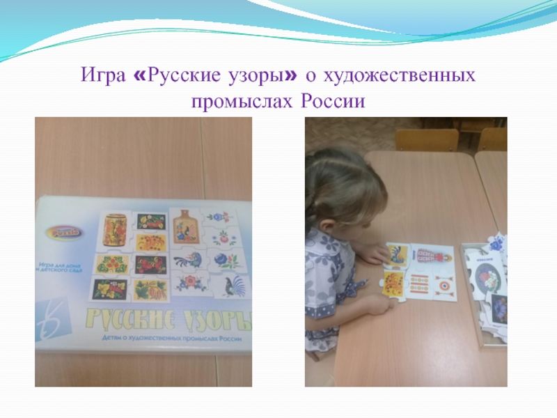 Слайд 20Игра «Русские узоры» о художественных промыслах России