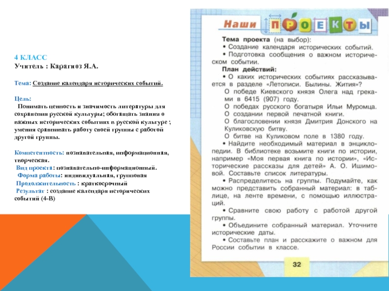 Результат : создание календаря исторических событий (4-В)