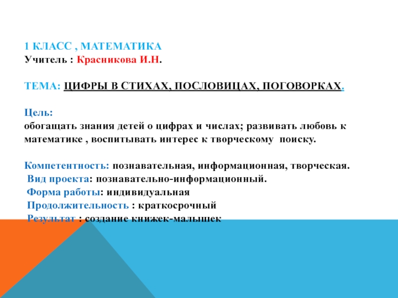 Тема: Цифры в стихах, пословицах,