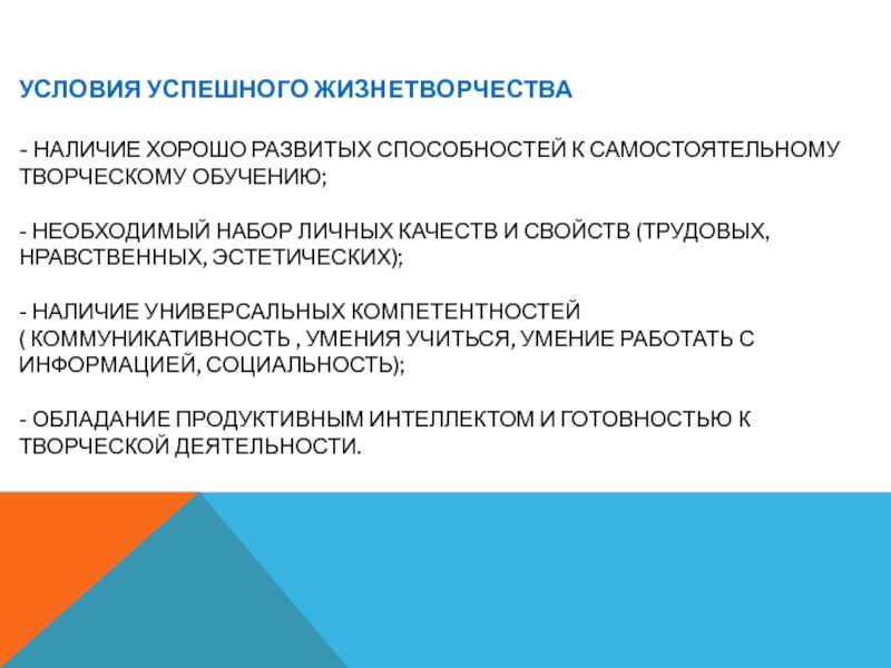 Слайд 22Условия успешного жизнетворчества