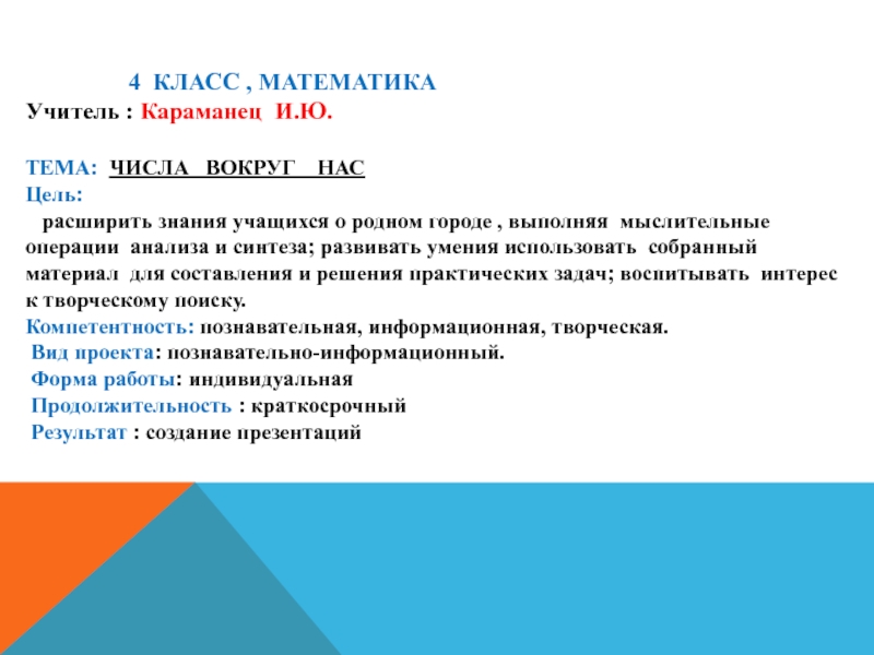 Учитель : Караманец И.Ю.
