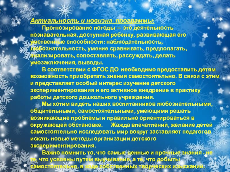 Прогнозирование погоды — это деятельность познавательная, доступная ребенку,