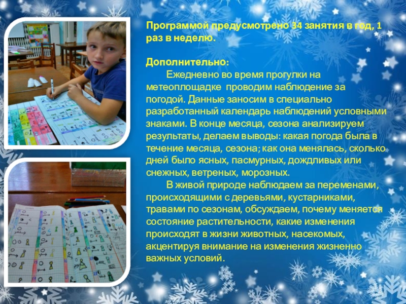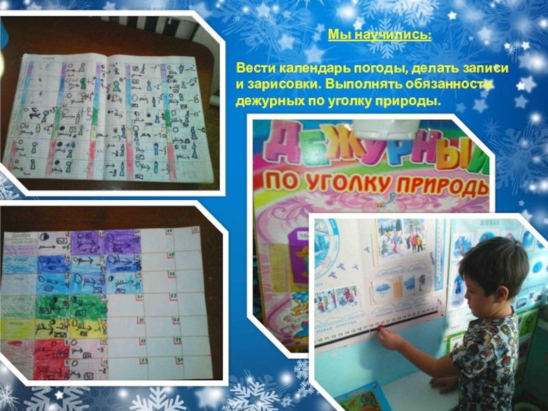 Учить фиксировать свои наблюдения с помощью знаков, символов в календарях погоды, тетрадях наблюдений и т.д.