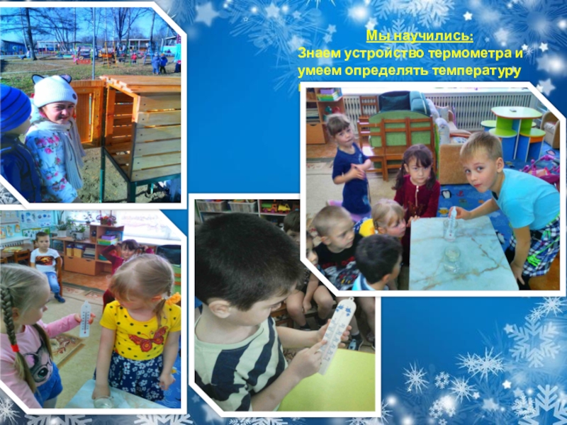 Знаем устройство термометра и умеем определять температуру воздуха.