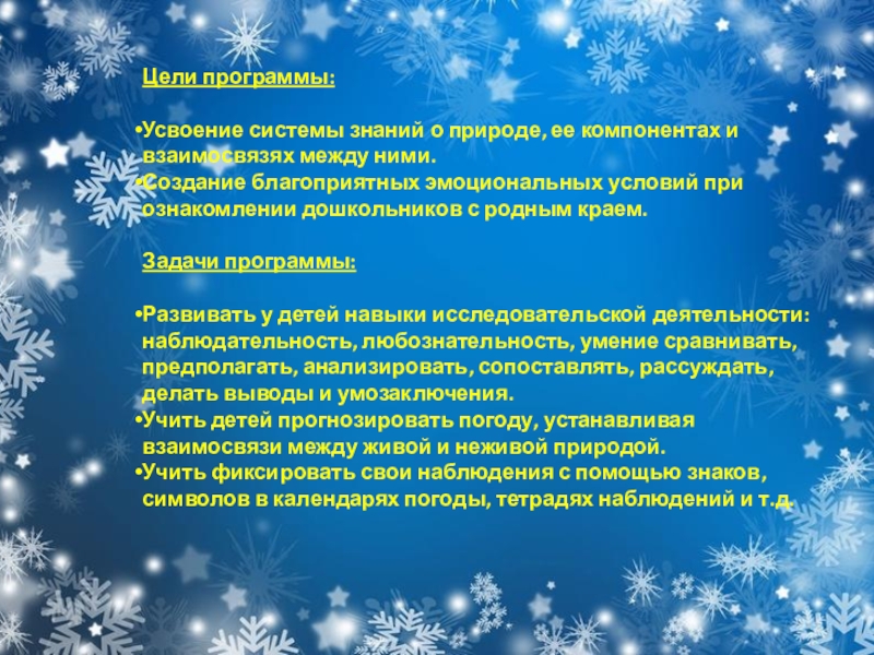 Учить детей прогнозировать погоду, устанавливая взаимосвязи между живой и неживой природой.