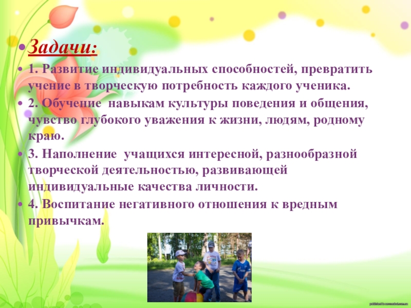 Это сайт презентаций, где можно хранить и обмениваться своими презентациями, докладами, проектами, шаблонами в формате PowerPoint с другими пользователями. Мы помогаем школьникам, студентам, учителям, преподавателям хранить и обмениваться учебными материалами.