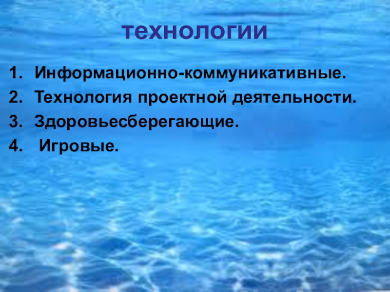 технологии Информационно-коммуникативные.Технология проектной деятельности.Здоровьесберегающие. Игровые.