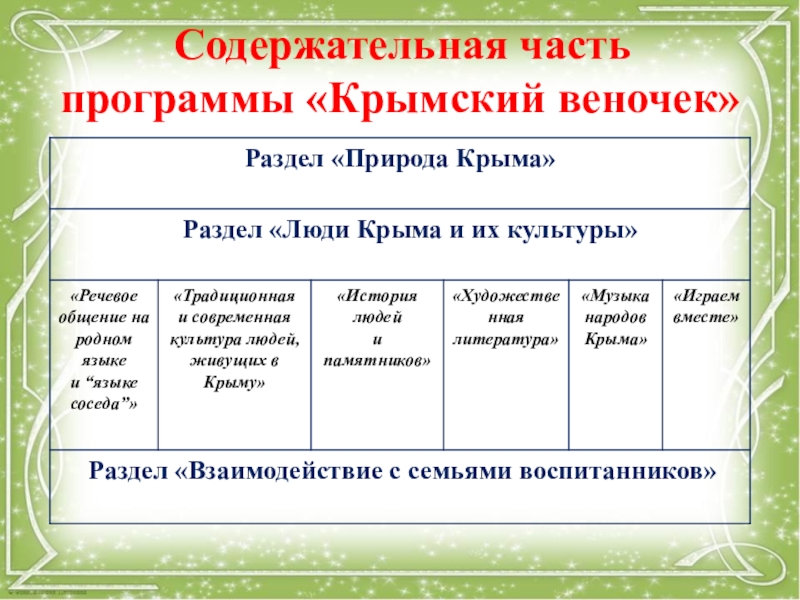 Слайд 10 Содержательная часть программы «Крымский веночек»