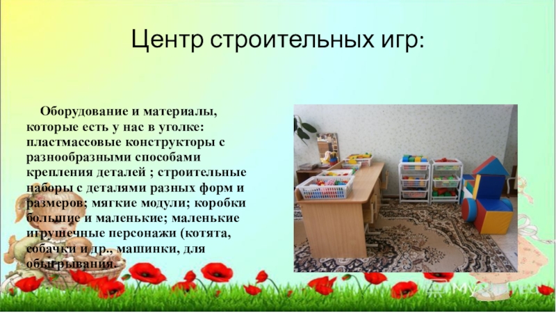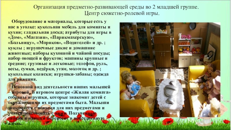Слайд 3 Организация предметно-развивающей среды во 2 младшей группе.