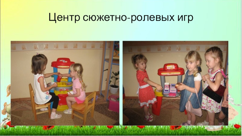 в центре игрушки максимально приближают дошкольников к предметам, окружающим их в быту. Для реализации гендерных подходов к воспитанию детей при создании предметно- развивающей среды необходимо учитывать интересы мальчиков и девочек, подбирать необходимые атрибуты для полоролевых игр.