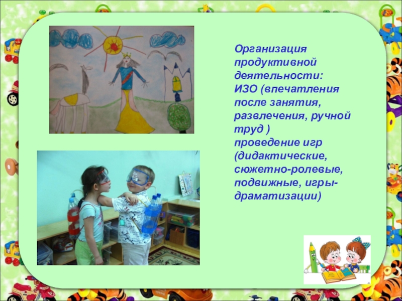 проведение разнообразных игр (малоподвижные, сюжетно-ролевые, дидактические, игры-драматизации, игры с музыкальным сопровождением и др.) ;