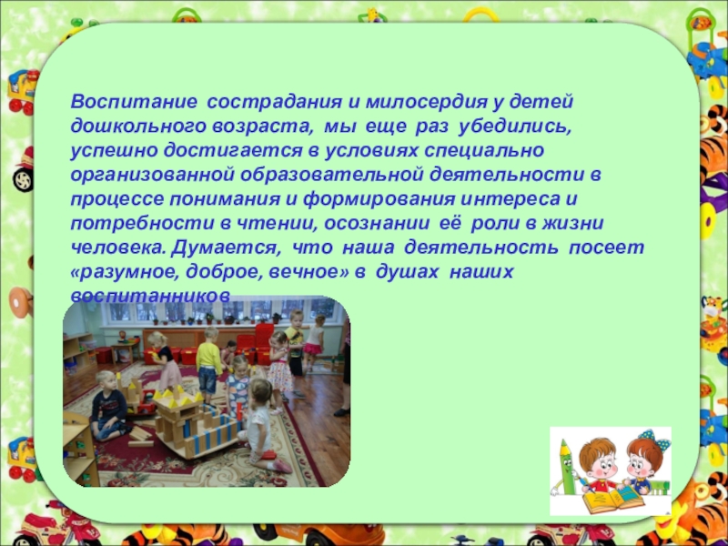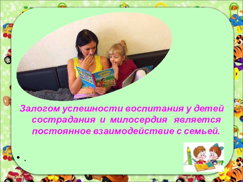 Слайд 11Залогом успешности воспитания у детей сострадания и милосердия является постоянное