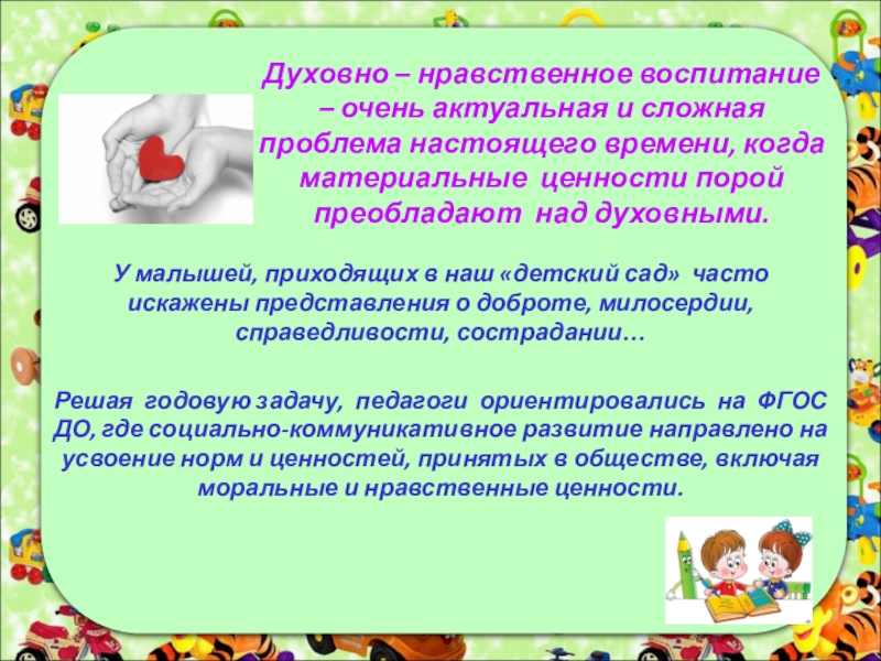 У малышей, приходящих в наш «детский сад» часто искажены представления о доброте, милосердии, справедливости, сострадании…