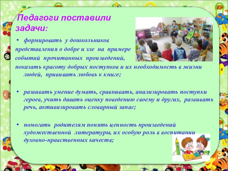 помогать родителям понять ценность произведений художественной литературы, их особую роль в воспитании духовно-нравственных качеств;
