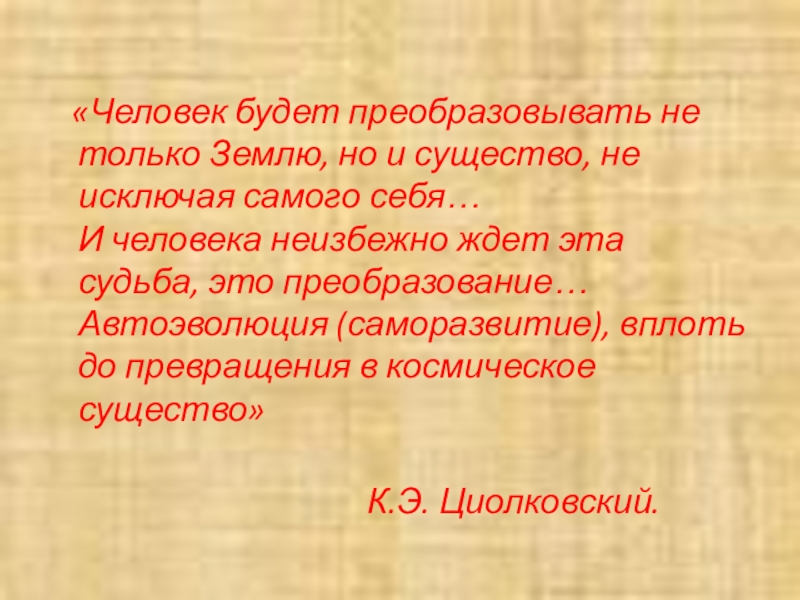 Слайд 2 «Человек будет преобразовывать не только Землю, но и существо,