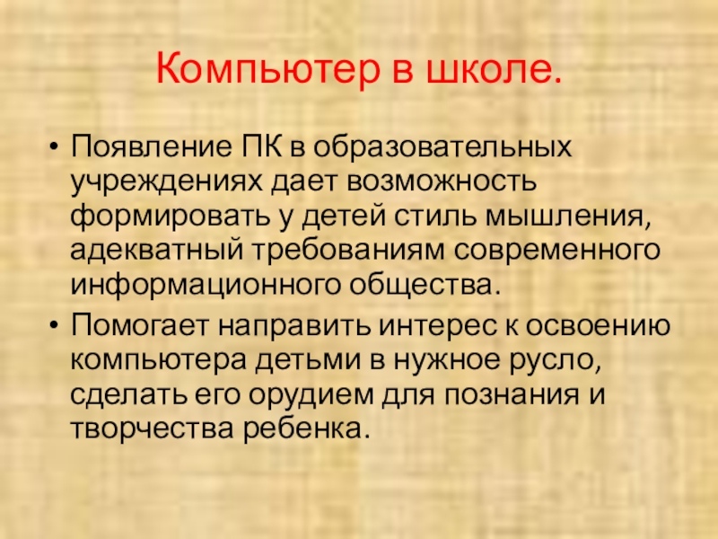 Появление ПК в образовательных учреждениях дает возможность формировать у