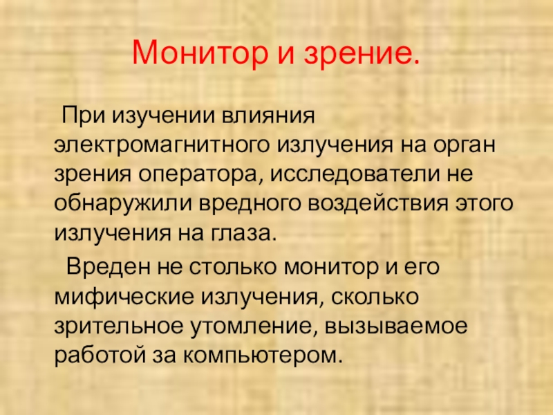 Слайд 6Монитор и зрение.