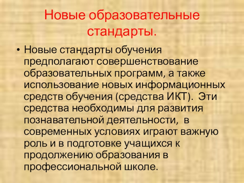 Новые стандарты обучения предполагают совершенствование образовательных программ, а также