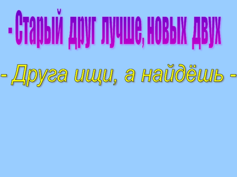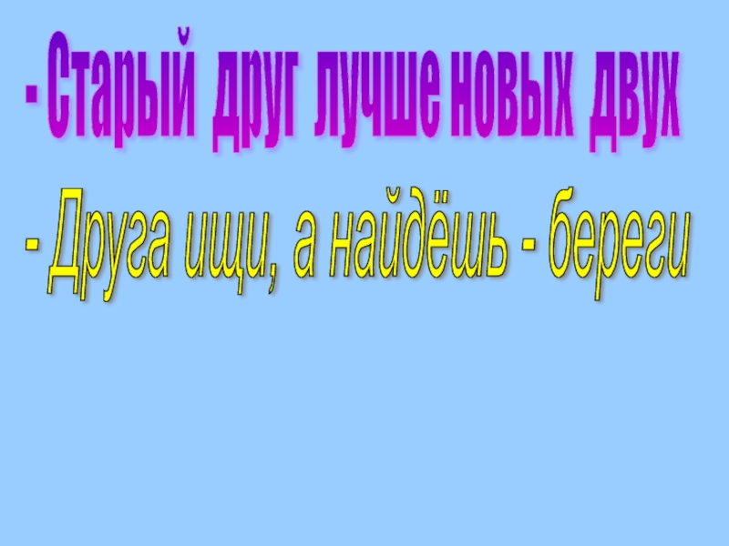 - Друга ищи, а найдёшь - береги- Старый друг лучше новых двух
