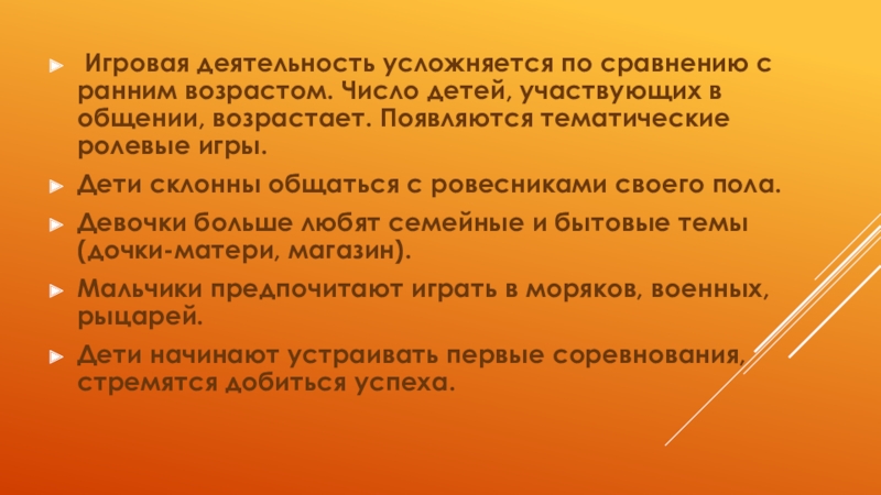 Слайд 10 Игровая деятельность усложняется по сравнению с ранним возрастом. Число детей,