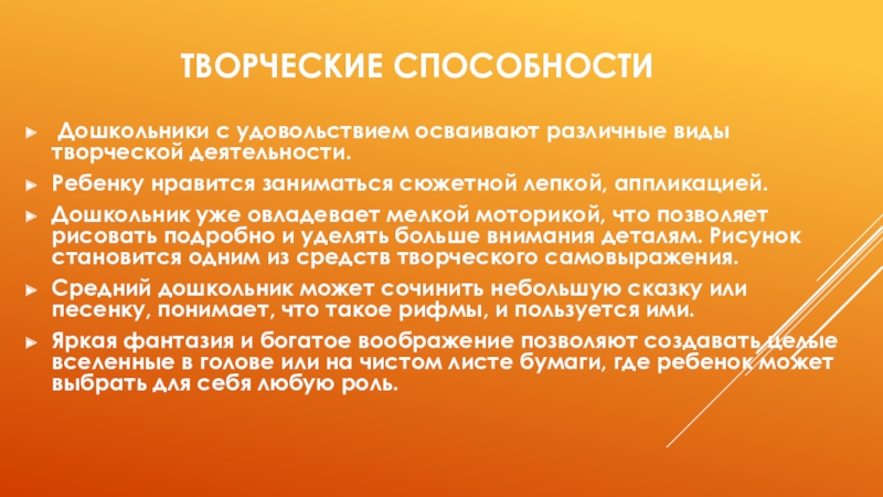 Дошкольник уже овладевает мелкой моторикой, что позволяет рисовать подробно и уделять больше внимания деталям. Рисунок становится одним из средств творческого самовыражения.