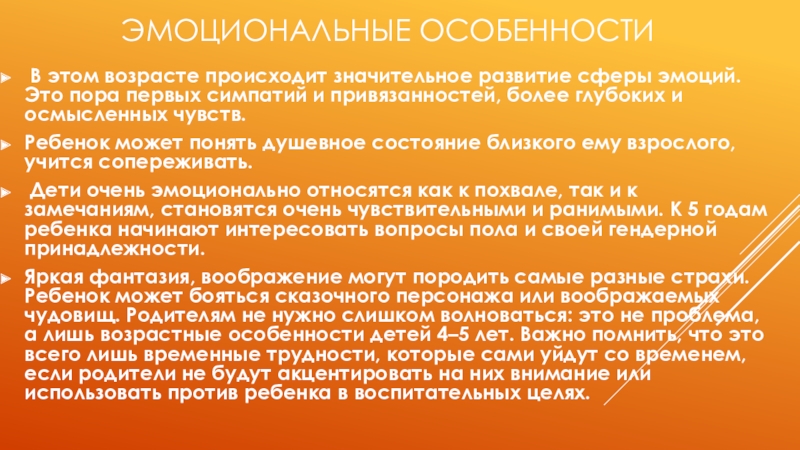 В этом возрасте происходит значительное развитие сферы эмоций.