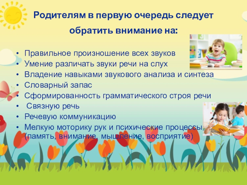Слайд 3Родителям в первую очередь следует обратить внимание на: