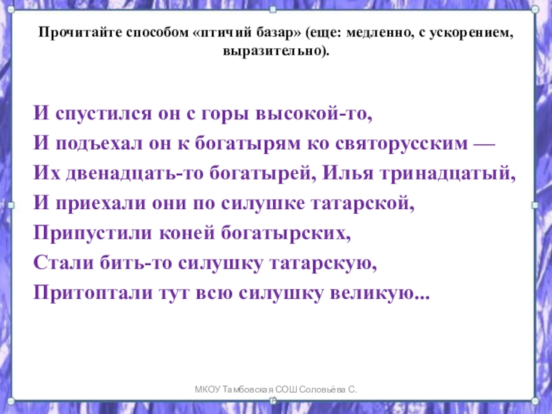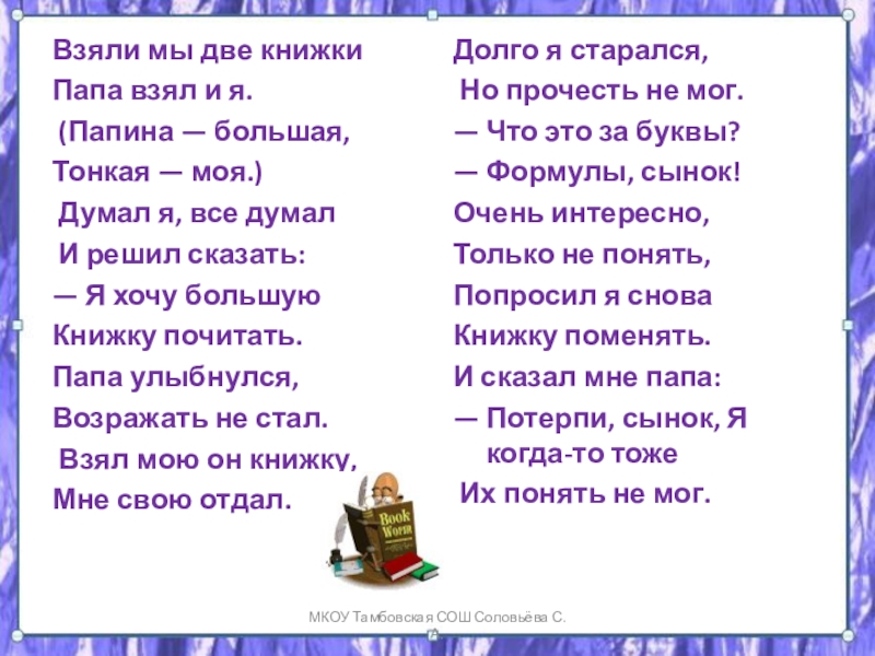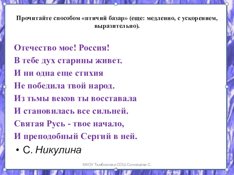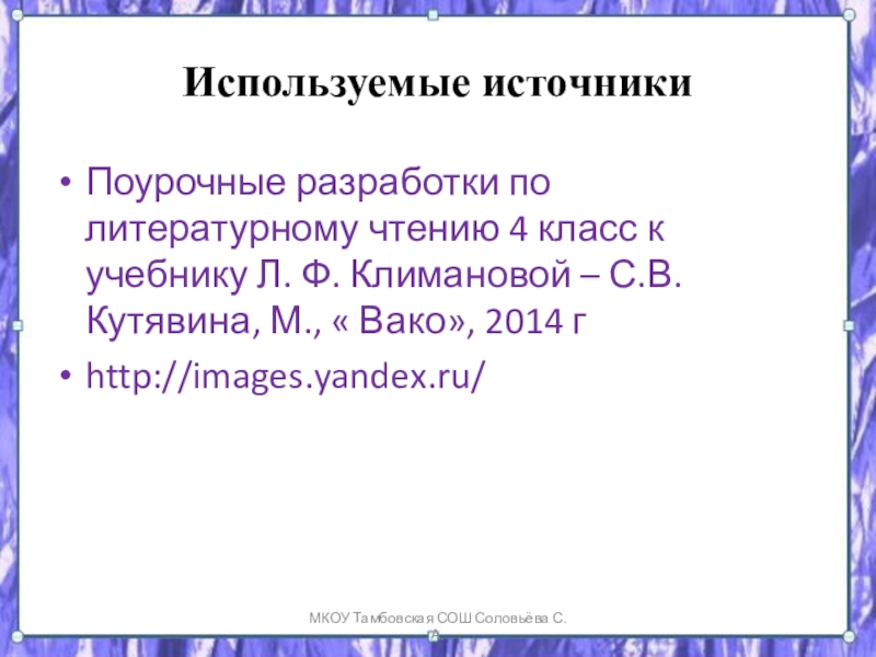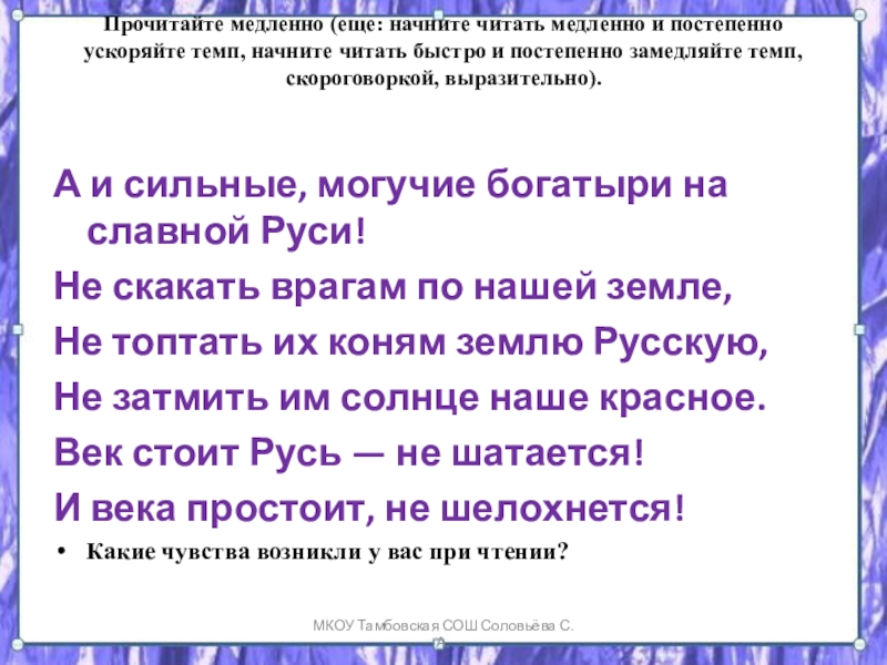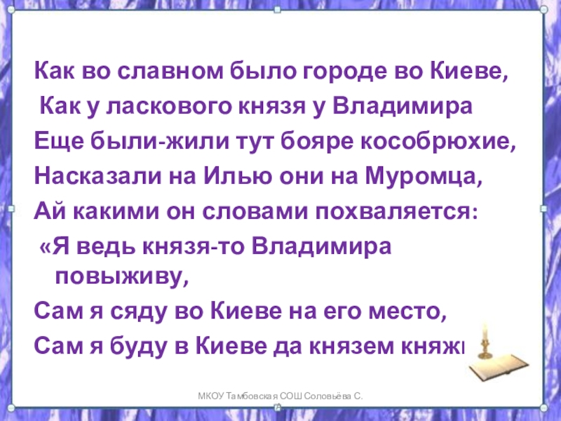 МКОУ Тамбовская СОШ Соловьёва С. А.