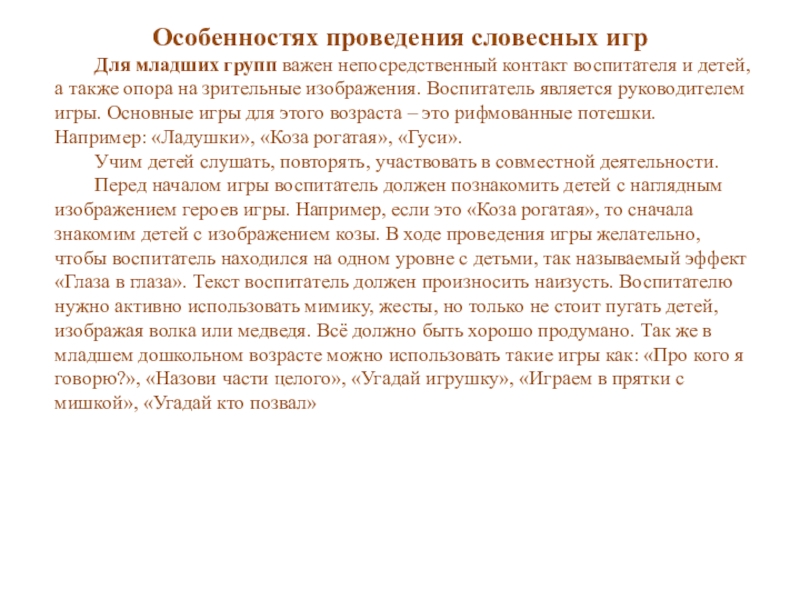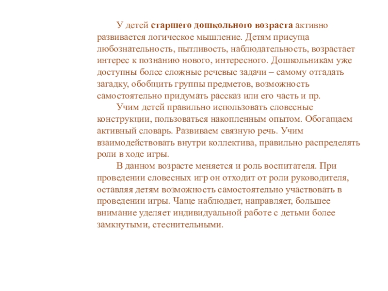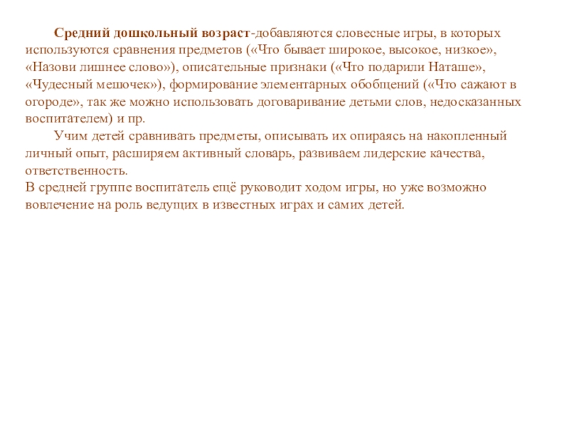 Игры, развивающие внимание, сообразительность, быстроту мышления, воспитывающие самообладание («Испорченный телефон», Краски», Где мы были, мы не скажем…», «Скажи наоборот», Было – будет», «Один много»)..