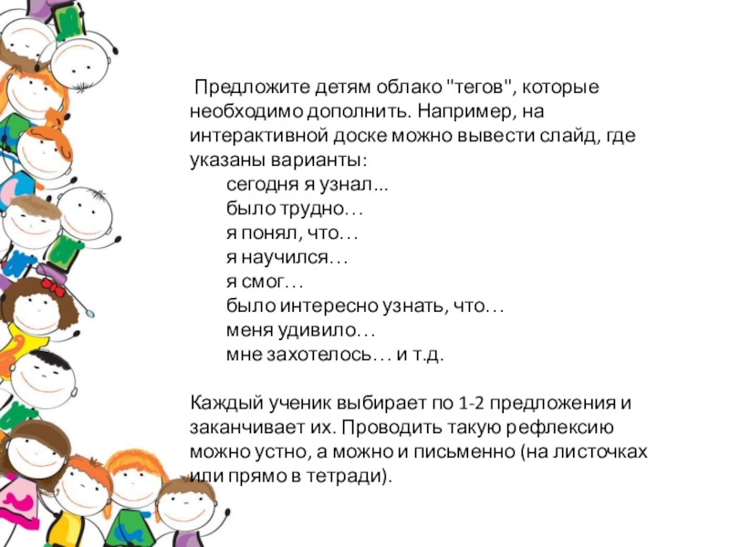 Слайд 34 Предложите детям облако "тегов", которые необходимо дополнить. Например, на интерактивной