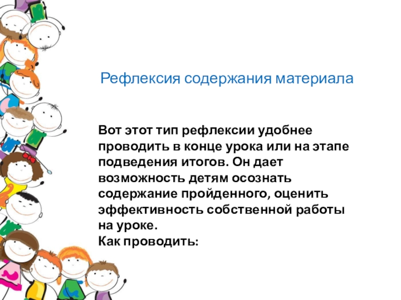 урока или на этапе подведения итогов. Он дает возможность детям осознать содержание пройденного, оценить эффективность собственной работы на уроке.