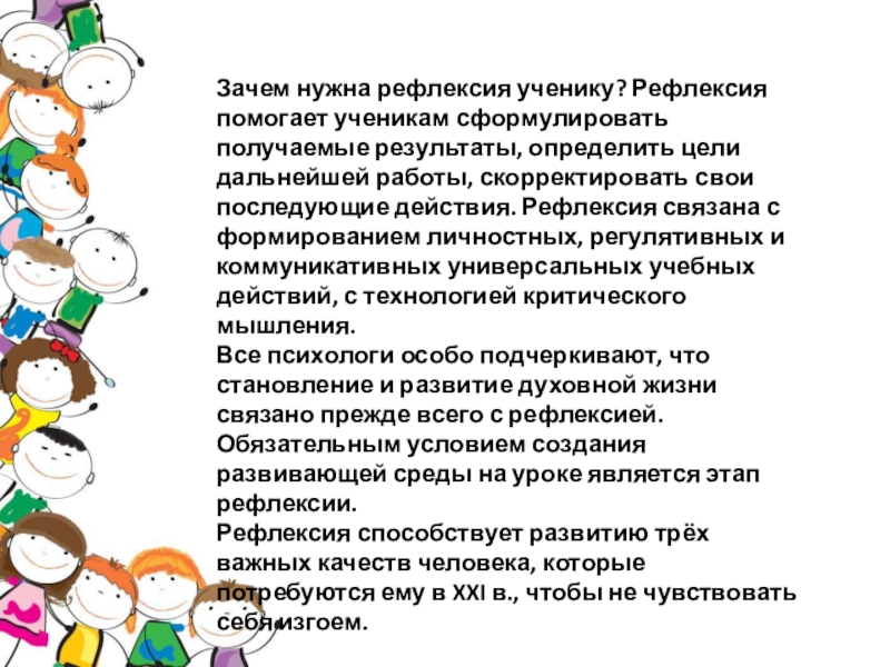 Рефлексия способствует развитию трёх важных качеств человека, которые потребуются ему в XXI в., чтобы не чувствовать себя изгоем.