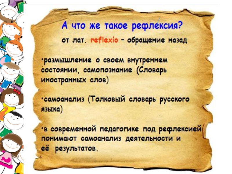 Она помогает ученикам сформулировать получаемые результаты, определить цели дальнейшей работы, скорректировать свои последующие действия. Организация рефлексивной деятельности на уроке позволяет ученику осознавать свою самобытность, индивидуальность и уникальность.