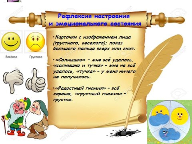 Она оценивает настроение, эмоциональное восприятие учебного материала. Это рефлексия из категории "понравилось / не понравилось", "интересно / скучно", "было весело / грустно". И наоборот, если условных "тучек" будет больше, значит, урок показался скучным, трудным, возникли сложности с восприятием темы. Согласитесь, нам бывает скучно и грустно, когда мы чего-то не понимаем.