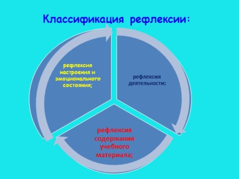 Существует несколько классификаций рефлексии как этапа урока. Зная классификацию, учителю удобнее варьировать и комбинировать приемы, включая рефлексию в план урока.