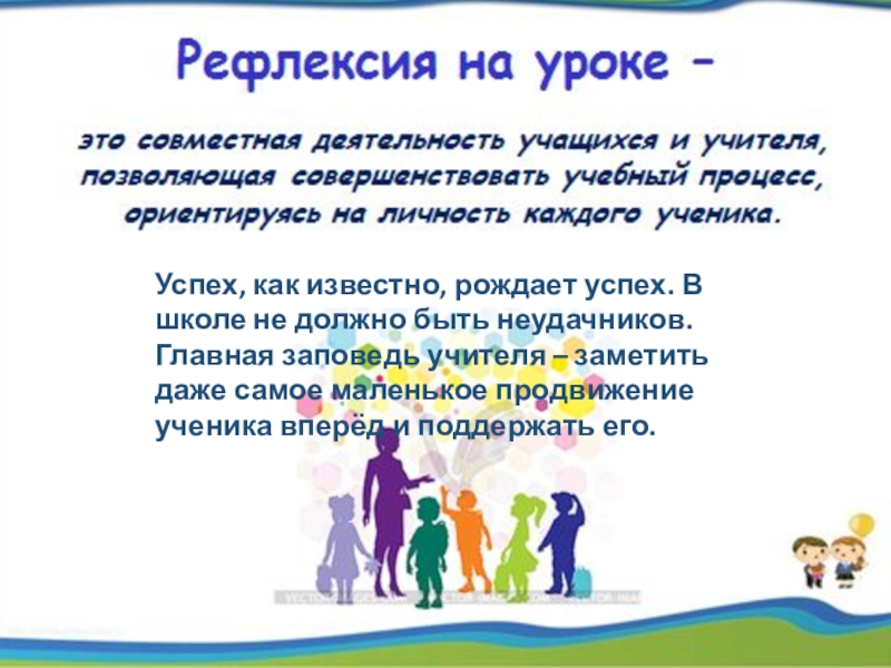 Слайд 40Успех, как известно, рождает успех. В школе не должно быть неудачников.