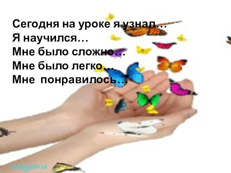 Сегодня на уроке я узнал…Я научился…Мне было сложно…Мне было легко…Мне понравилось…
