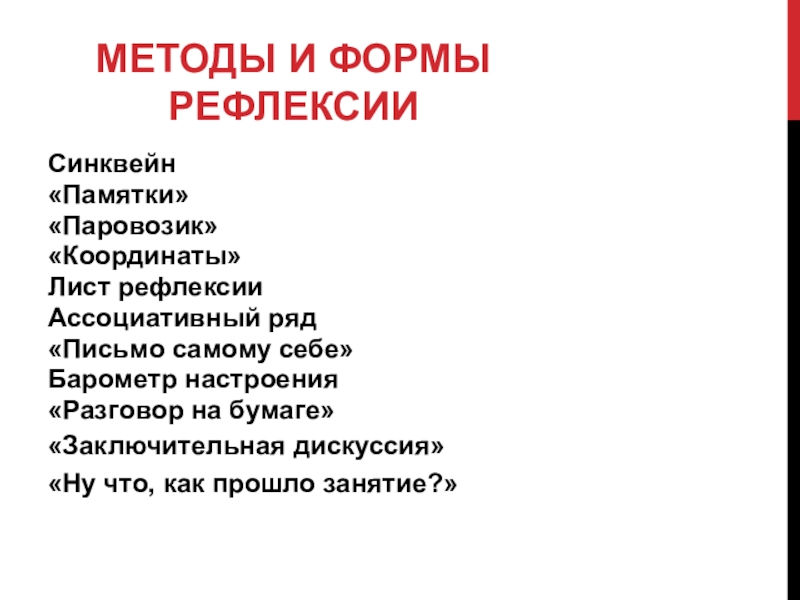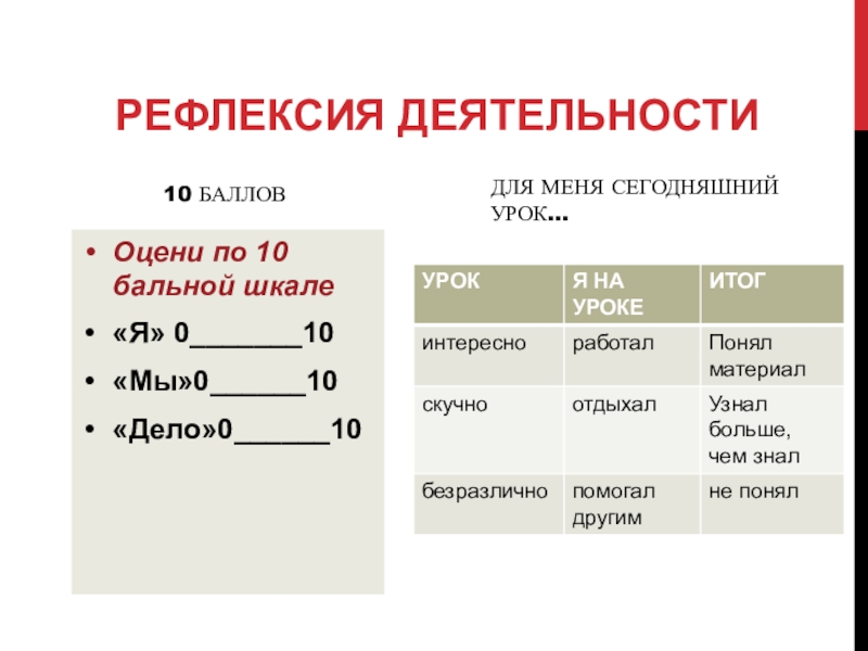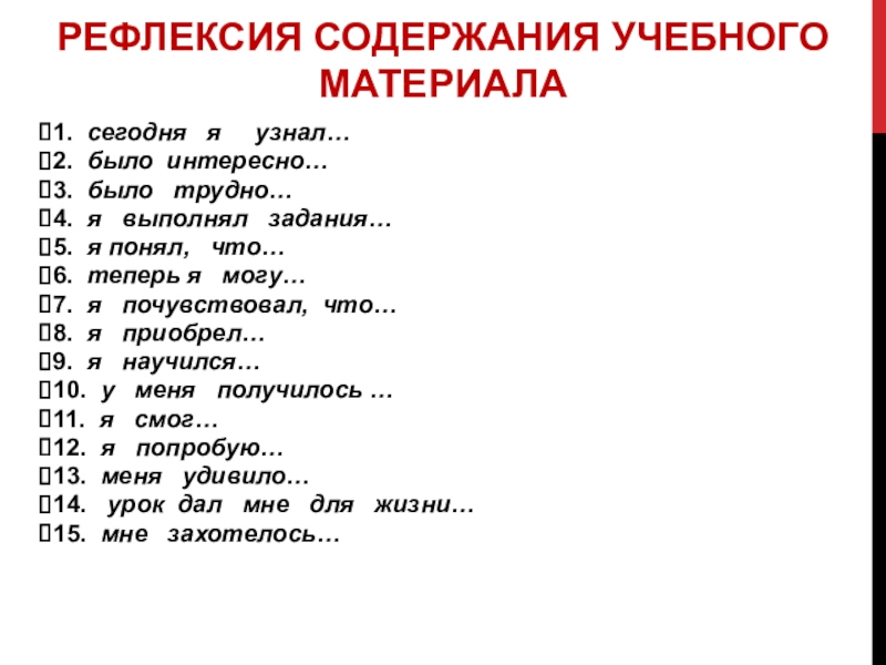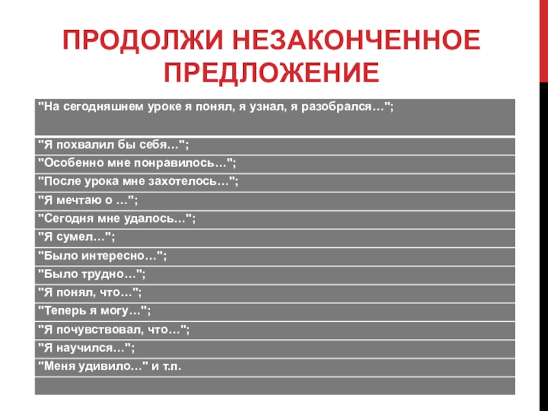 учащиеся выписывают все, что у них отсутствует или осталось непонятным.