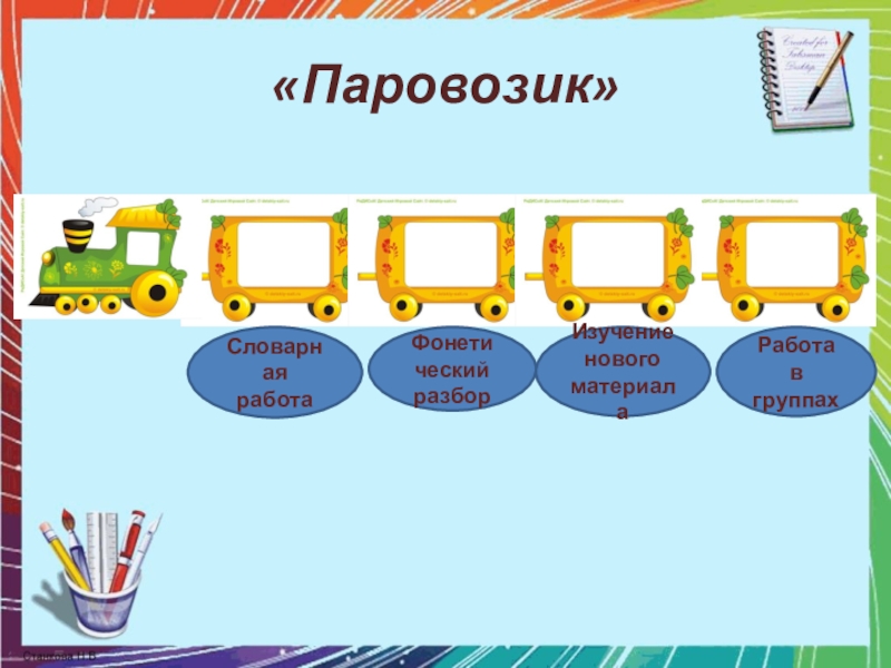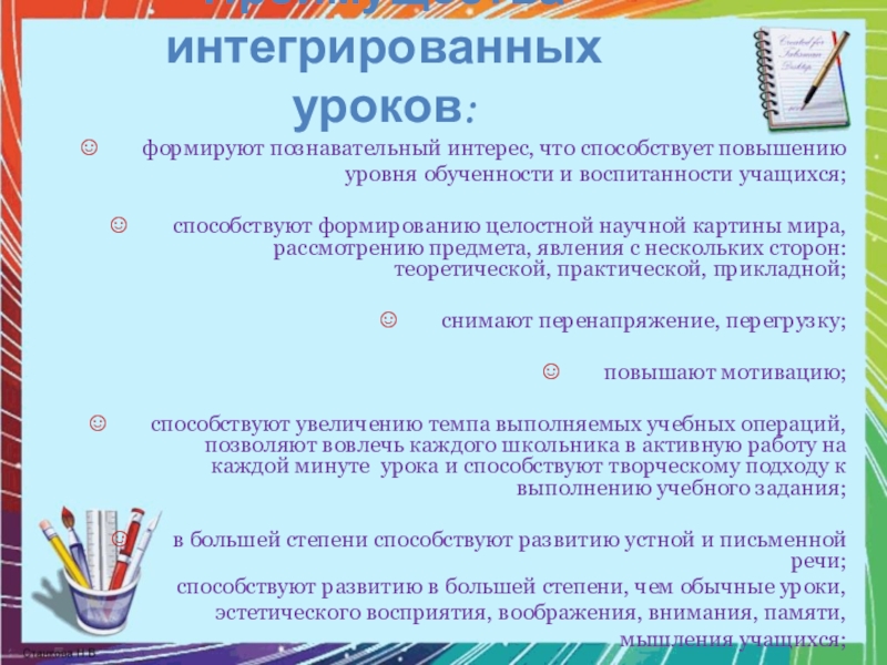 способствуют увеличению темпа выполняемых учебных операций, позволяют вовлечь каждого школьника в активную работу на каждой минуте урока и способствуют творческому подходу к выполнению учебного задания;