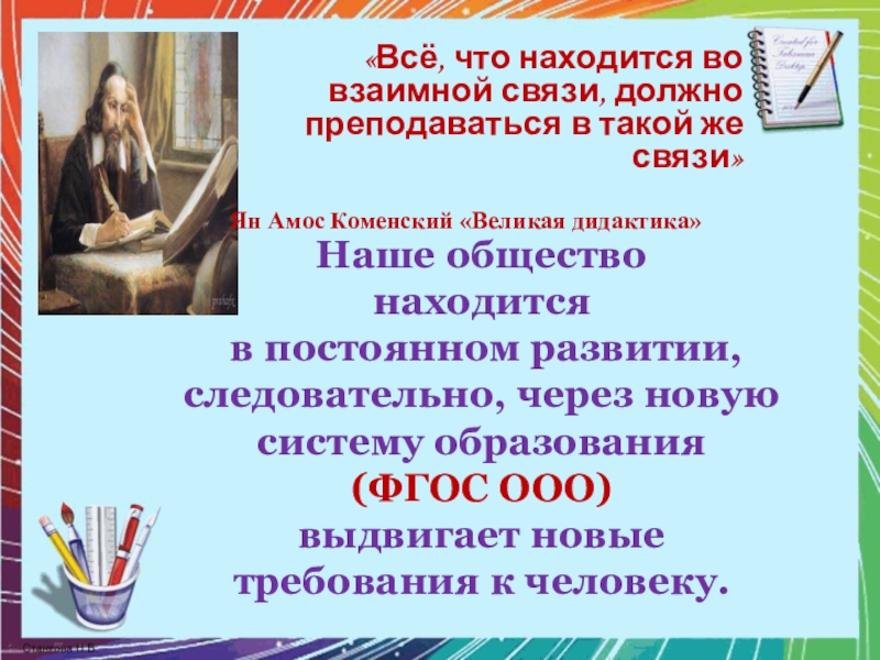 Слайд 6«Всё, что находится во взаимной связи, должно преподаваться в такой же