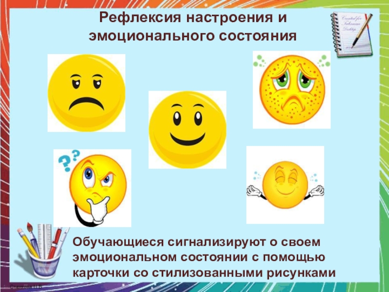 Слайд 19Рефлексия настроения и эмоционального состояния